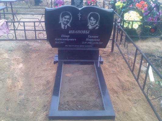 Семейные памятники, устанавливаемые на могилу, когда необходимо на одной стеле разместить два или более портрета с надписями. Так бывает, когда, например, хотят визуально объединить захороненных, близких при жизни людей.